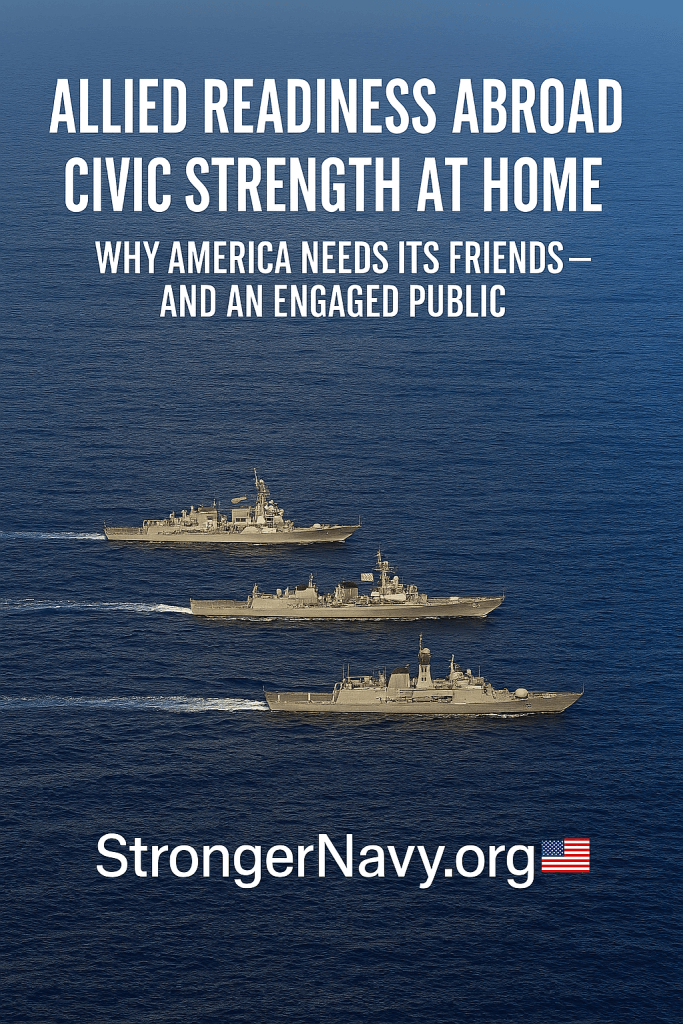 If “allied scale” defines how we compete abroad, civic scale defines how we endure at home. A stronger Navy — and a stronger America — begins with citizens who understand why it matters. Shipyards, alliances, innovation, and deterrence are not separate from the lives of everyday Americans; they are the foundation of prosperity, freedom, and peace.