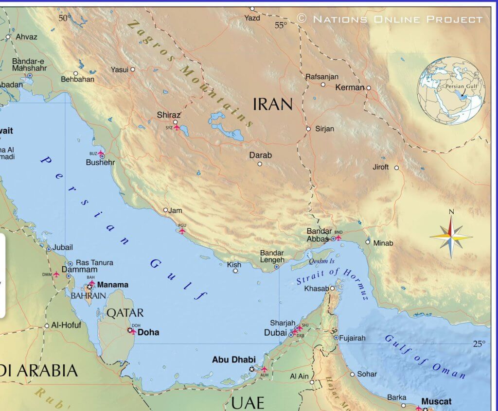 The Strait of Hormuz — a 21-mile-wide waterway on Iran’s southern border — is the single maritime exit for the Persian Gulf. Every barrel of oil produced in Saudi Arabia, Iraq, Kuwait, Qatar, the UAE, and Iran that leaves by sea passes through this one gap. It carries 20% of the world’s oil and a substantial share of global liquefied natural gas. There is no alternative route. Ships that cannot use the strait must sail around the southern tip of Africa — adding two to three weeks to every voyage.